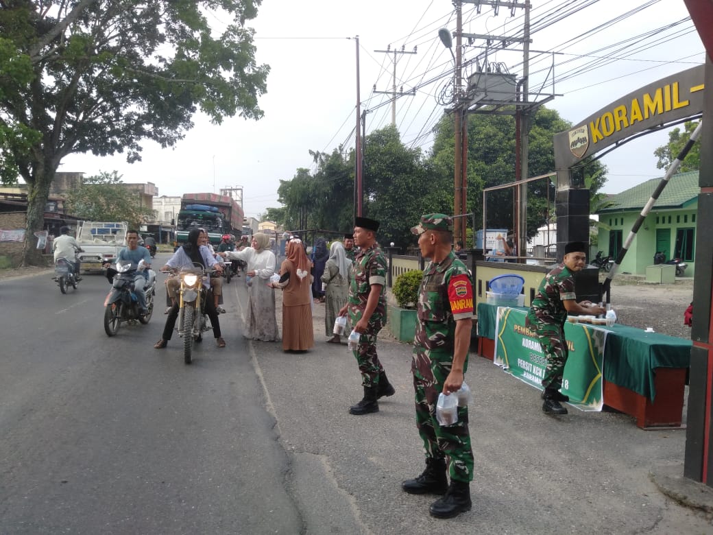 Amatan tim media, Kapten Arm Dosran M. Siregar juga ikut membagikan takjil bersama anggota Persit dan personil kepada masyarakat yang melintas di depan Koramil 07/AKB baik yang berkendaraan sepeda motor.maupun berjalan kaki. (Pendim0209)